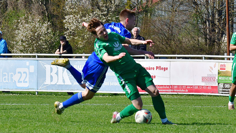 Einen Aufreger gab es zwischendurch auf der Gegenseite, als der eingewechselte Jonas Schneider vor Deisenhofens Georg Jungkunz an den Ball und dabei zu Fall kam. Schiedsrichter Felix Scharf pfiff und zückte nach einer Bedenkzeit die gelbe Karte (77.). „Er hat mir erklärt, dass noch ein Verteidiger hätte eingreifen können“, berichtete Schneider über die Unterredung mit dem Referee. Andernfalls wäre der Platzverweis für den Deisenhofer, der übrigens laut offiziellem Spielberichtsbogen da schon längst ausgewechselt war, unvermeidbar gewesen.